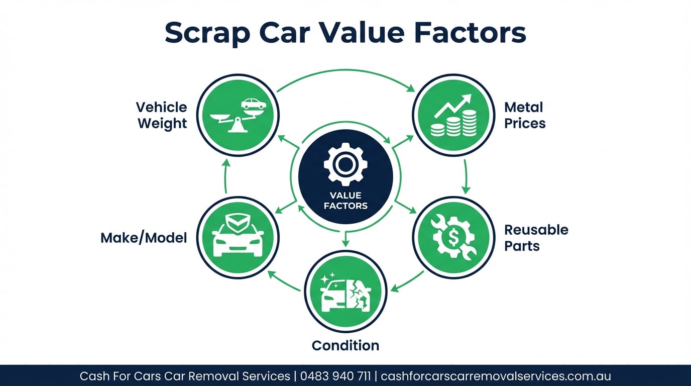 The value of a scrap car depends on multiple factors, from global metal markets to local demand for parts. Understanding these factors helps you evaluate offers and ensure you're getting a fair price.