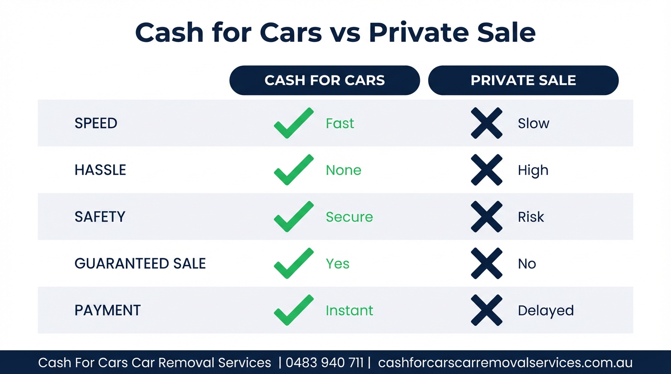 Selling a car doesn't have to be complicated. Cash For Cars Car Removal Services eliminates most of these risks: