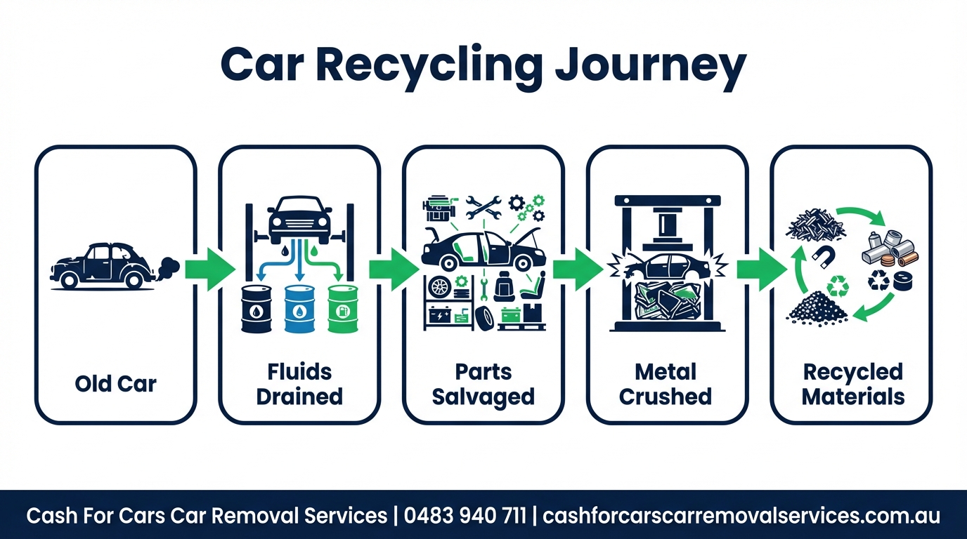 At Cash For Cars Car Removal Services, we partner with licensed recycling facilities that meet all Australian environmental standards. When you sell your car to us, you can be confident it will be processed responsibly.